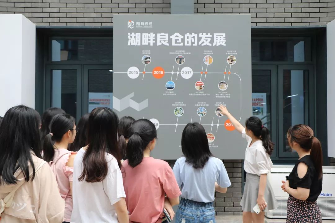 湖畔良仓以“让创业不再孤单、让创业更加简单、让创业变得好玩”为理念,为入驻的创业者、小企业提供投融资、政策支持、企业申报以及培训等服务,帮助他们突破企业发展的瓶颈。参观过程中,讲解员不仅向同学们介绍良仓公开课、良仓三人行、CEO小饭桌等品牌特色活动,还详细讲述一些在良仓孵化成熟的明星公司的成长历程。最具代表性的数澜科技,一直专注于企业的大数据服务,从2016年只有六个人的创业小团队发展成如今经过三轮融资总估值超过10亿元的大公司。