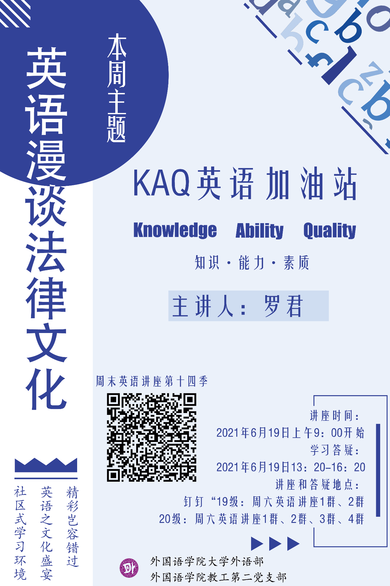 - 大外部第十五季周末英语公益讲座圆满收官