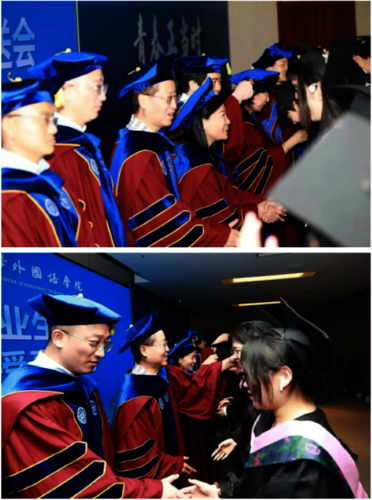 在场的毕业生们也以经久不息的掌声向班主任们致以最诚挚的敬意。感谢牌上的鎏金文字,不仅是对班主任辛勤付出的褒奖,更是外院学子与师长之间情谊的永恒见证,照亮了毕业生们前行的征途。